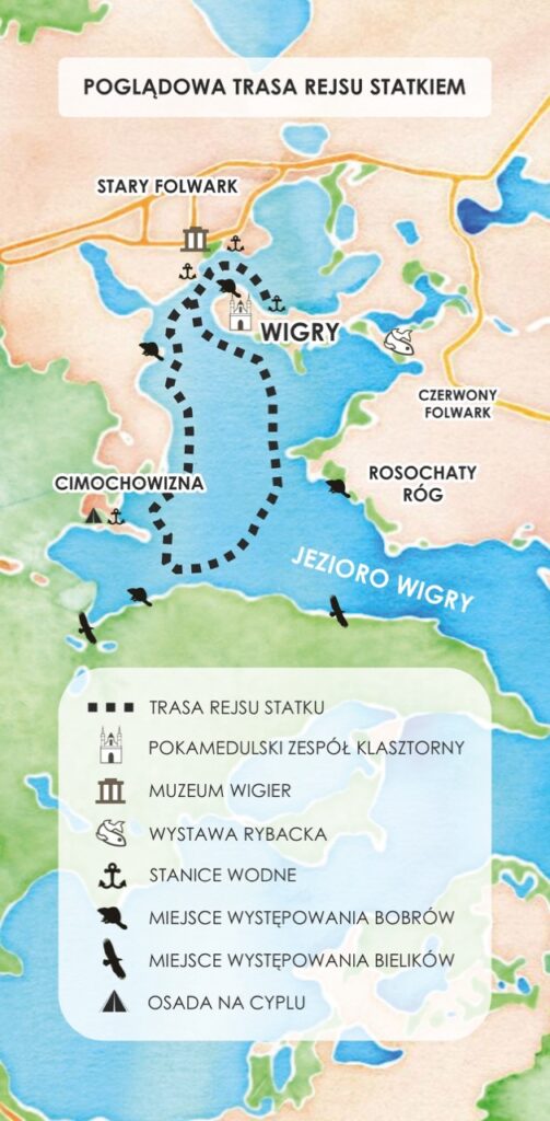 ROZKŁAD REJSÓW SZLAKIEM PAPIESKIM PO JEZIORZE WIGRY (1 h),